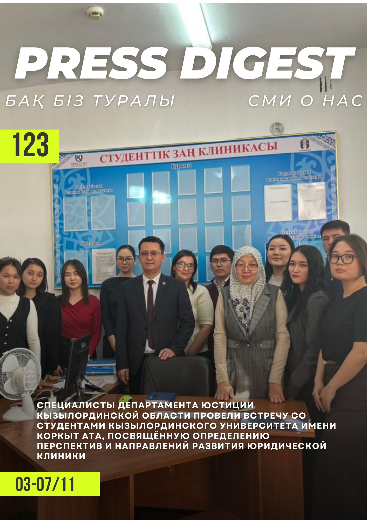1. Специалисты Департамента юстиции Кызылординской области провели встречу со студентами Кызылординского университета имени Коркыт Ата, посвящённую определению перспектив и направлений развития Юридической клиники