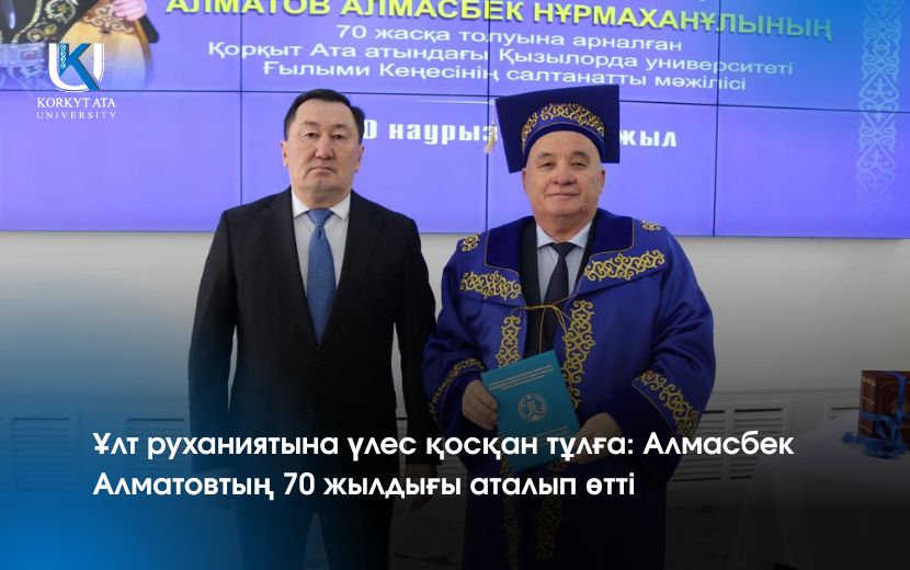 Қорқыт ата атындағы Қызылорда университетінде Қазақстанның еңбек сіңірген қайраткері, жырау, өнертанушы, профессор Алмасбек Нұрмаханұлы Алматовтың 70 жылдық мерейтойына арналған Ғылыми кеңестің кеңейтілген салтанатты мәжілісі өтті.