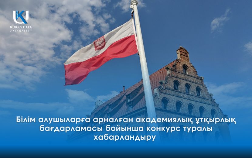 Қорқыт Ата атындағы Қызылорда университетінің халықаралық байланыстар бөлімі серіктес Лодзь университетінде (Польша) ағылшын тілінде оқуға 2025-2026 оқу жылының (15.02-30.06.2026ж.) көктем семестріне арналған академиялық ұтқырлық бағдарламасы бойынша конкурсқа құжаттар қабылдайды. Конкурсқа бакалавриат және магистратура білім алушылары (бітіруші курстардан басқа) келесі білім беру бағдарламалары бойынша қатыса алады: заң және әкімшілік факультеті, экономика және әлеуметтану факультеті, биология және қоршаған ортаны қорғау факультеті, география ғылымдары факультеті, халықаралық және саяси зерттеулер факультеті, философия және тарих факультеті, басқару факультеті, Математика және информатика факультеті, Физика және қолданбалы информатика факультеті, Химия факультеті, Педагогикалық ғылымдар факультеті, Филология факультеті (шетел тілдері және орыс тілі, мәдениеттану және медиатану, журналистика).